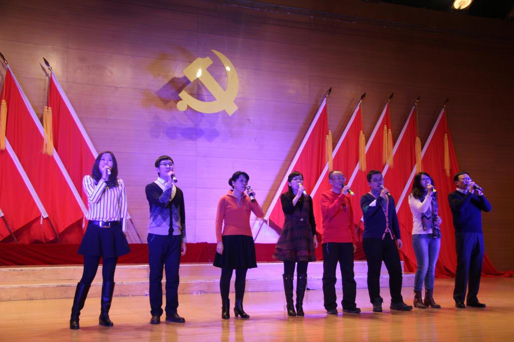 晚会在一曲《唱支山歌给党听》中拉开了帷幕,伴舞时而轻盈优美,时而活力四射。晚会分为三个篇章,第一章飘扬的旗帜,电气党支部的《国家》情深意切,《呼儿嘿呦》轻快有力,团总支的《大中国》激情澎湃,唱出了当代大员工对祖国的深深热爱和赤子之心。第二章峥嵘的岁月,由各党支部书记合唱的《打靶归来》再现了解放军的艰苦奋斗和苦中作乐的卓绝精神。舞蹈《请到草原来》让大家领略到蒙古族的豪迈和热情,办公室的《走向复兴》唱出了所有中华儿女的中国梦。来自通信党支部的《明天会更好》将晚会推向高潮。最后一章复兴的征程,在《保卫黄河》汹涌激昂的旋律中,舞动出共产党勇贯三军的气势。电信党支部的《中国军魂》唱出了中国军人的铮铮铁骨和不屈意志。在《歌唱祖国》振奋人心的歌声中,晚会落下帷幕。