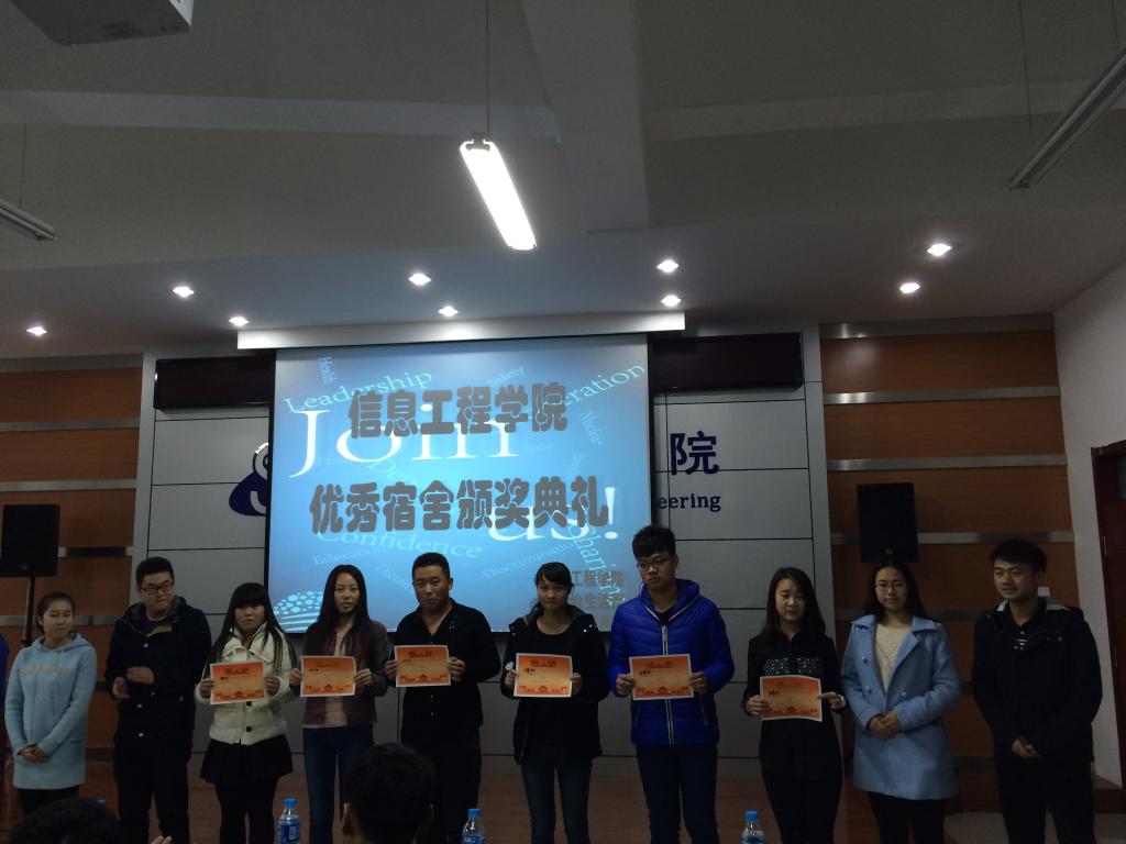 2015年11月8日上午,由m88官网员工会生活部举办的“信息工程公司优秀宿舍颁奖仪式”在逸夫楼F302成功举行。优秀宿舍代表及全体员工干部参加了本次活动。