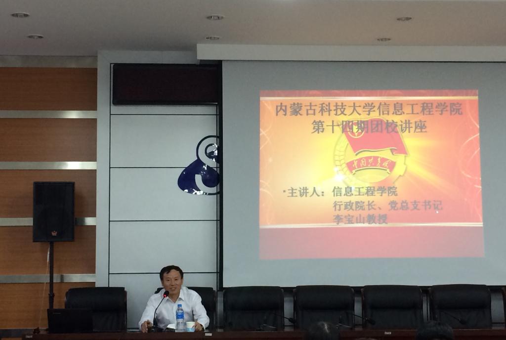 5月6号晚7时,m88官网团务部于逸夫楼F302举行第十四期团校第五课时讲座,信息工程公司行政院长、党总支书记李宝山教授及团总支书记刘新老师参与此次讲座。