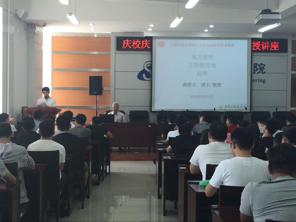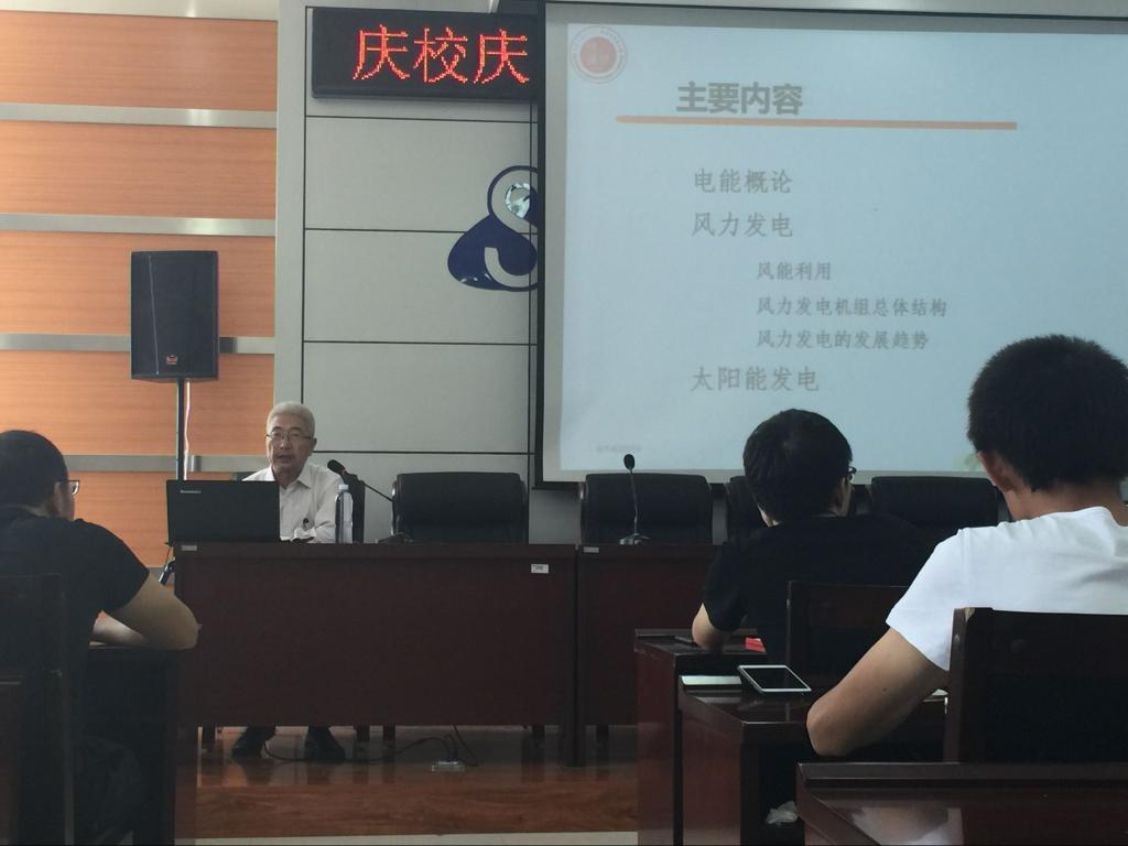 为庆祝我校建校60周年,9月14日下午15:00,m88官网邀请魏毅立讲授为公司电气专业老师和同学们进行讲座,讲座内容为“风力发电和太阳能发电”。讲座持续两个小时,魏教授的精彩讲座不断引起同学们的掌声。