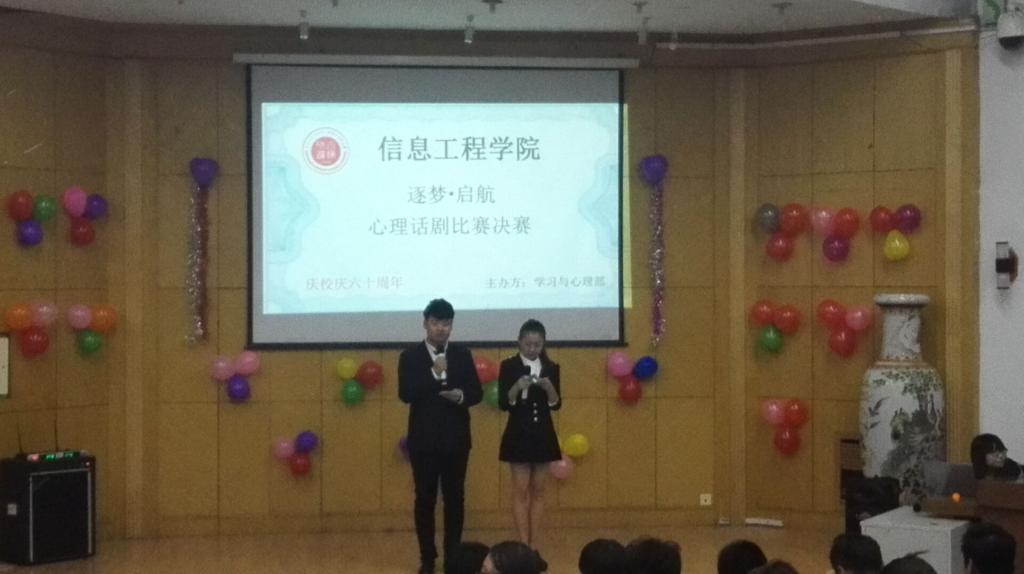 2016年11月4日晚7时,由m88官网学习与心理部举办的“逐梦•启航”心理剧决赛在主教F108拉开帷幕。大三员工干部出席了本次决赛。