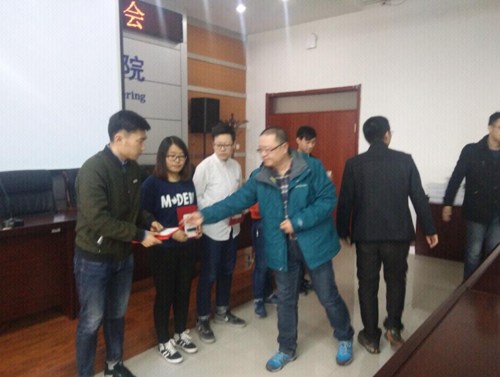 表彰会伊始,杜老师和王老师分别就软件和硬件在移动互联网、就业前景和安卓开发等方面进行了详细的讲解。杜老师和王老师鼓励员工在大学学习过程中积极参加科技创新活动,不断丰富自己的大员工活。创新标兵代表14电信2班的张星同学在表彰会上分享了自己在参与科技创新活动中的所感所悟,以自身收获鼓励大员工应积极投身科技创新,发掘自己创新潜力。最后,老师们为电信专业张星、宋刘亮、刘存凯、姚丽萍、颜蒙蒙五位同学颁发了荣誉证书。