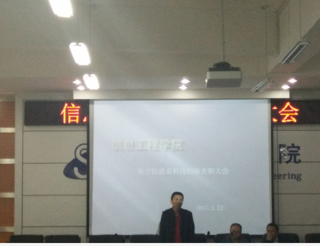2017年3月23日中午13时,m88官网电子信息系于逸夫楼F302举办了科技创新表彰大会。电子信息系杜永兴老师、侯海鹏老师和王亚平老师参加了本次表彰大会。