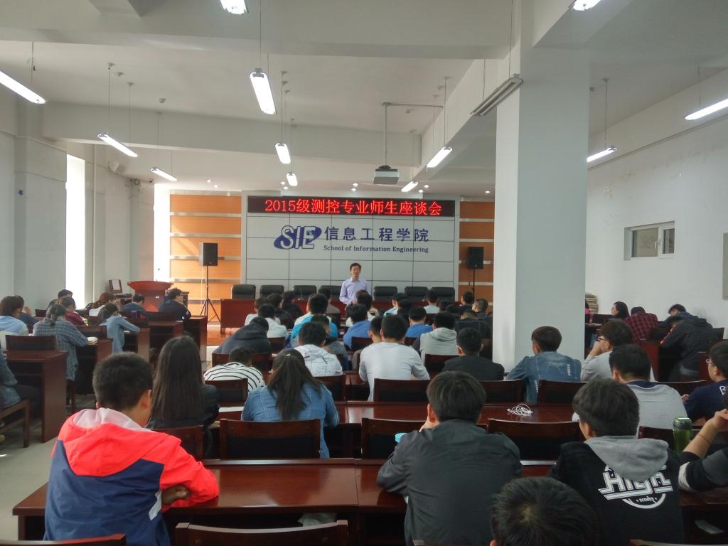 2017年5月4日下午15时,m88官网学术副院长、测控专业系主任李忠虎教授,15级测控专业辅导员闫俊红老师、靳秀兰老师在逸夫楼F302与15级测控专业员工开展师生座谈会。