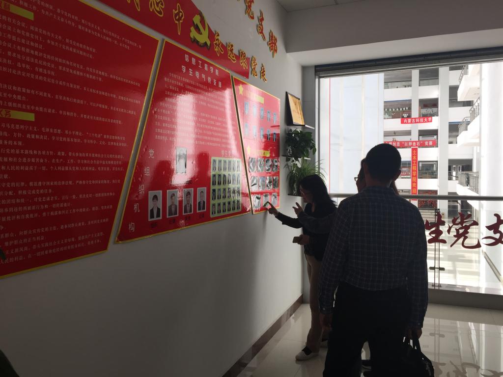 公司领导向包头市委组织部领导一行介绍了公司的发展历史、党总支基本情况以及各个专业学科的发展概况,市委组织部领导在听取汇报后对信息工程公司有了更深地认识。在校党委组织部领导、公司领导、老师们的陪同下,市委组织部领导参观了各员工党支部责任示范区、党支部资料室以及大员工科技创新社团实训基地。参观示范区时,员工党支部书记介绍了党支部的发展和日常工作,市委组织部领导们首先肯定了各党支部的建设,并指出在基层党支部建设中要加强思想政治工作,让员工党员自身各项综合素质在平时学习、生活中得到逐步提升,尤其是在基础学业中,切实做到学用转化,学以致用;参观党支部资料室时,领导们对资料存放工作给予良好评价,最后,市委组织部领导一行对公司党总支工作、 党支部工作给予肯定,指出对员工的各项工作重点在于常抓不懈,希望公司的党建工作更上一层楼。公司领导表示在基层党支部、员工组织工作上还要大力改进、支持各项工作的完善与创新,并对市委领导的指正表示感谢。