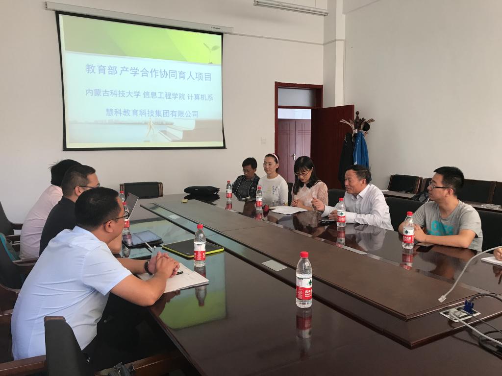 2017年9月27日,教育部产学合作协同与人项目---”Web前端课程体系建设”签约授牌仪式及校企交流会在m88官网举行,李宝山院长、杨立东副院长,计算机系张晓琳主任,计算机系副主任赵宇红、褚燕华、刘月峰,大数据专业方向周李涌、兰孝文老师,项目负责人高鹭老师及慧科集团相关领导及项目负责人参加了本次会议。