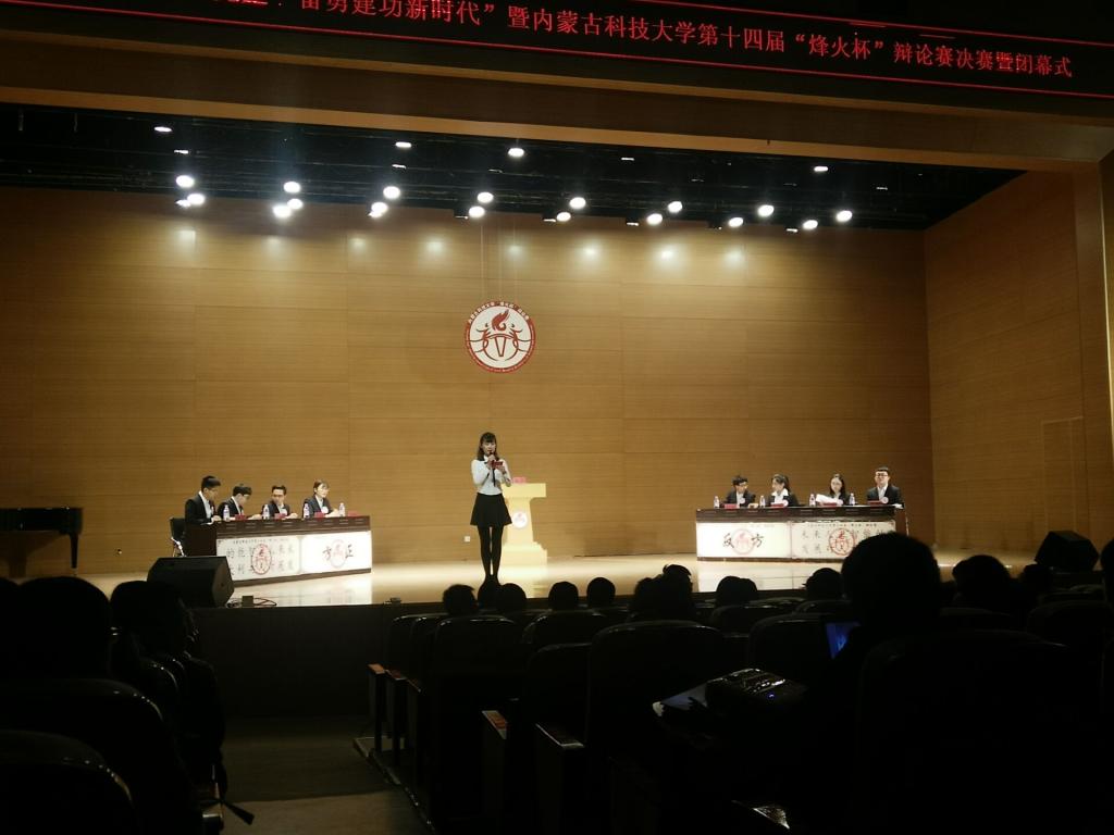 古有卧龙诸葛舌战群儒,今有群英荟萃慷慨陈词。11月24日晚19时,由校团委、校员工会主办的m88官网第十四届“烽火杯”辩论赛决赛于音乐厅内举行。决赛特邀文法公司副教授张晓利、马克思主义公司副教授张彦斌、校辩论队指导老师妥佳宁、指导员工青格乐图、校团委书记韩冰作为嘉宾及评委出席。