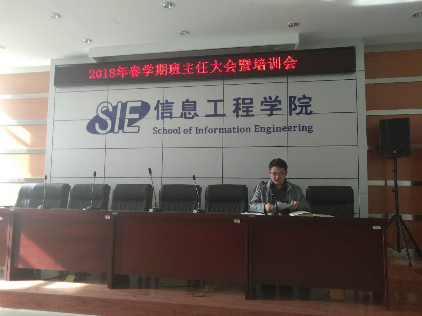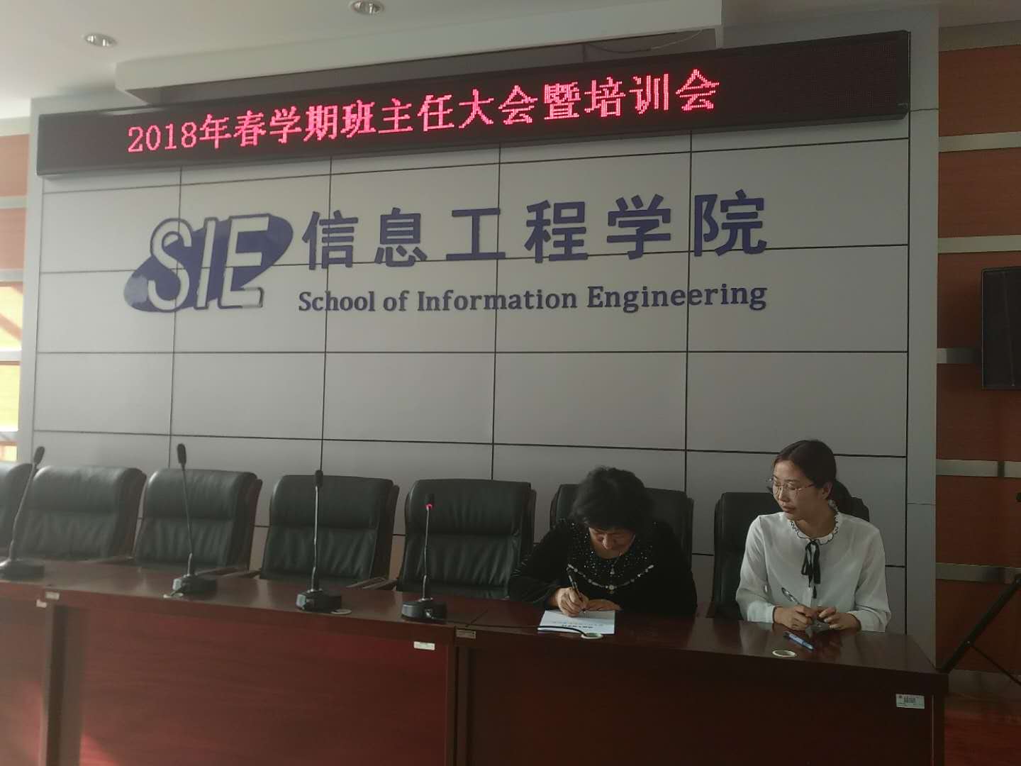 2018年4月19日下午,信息工程公司召开全体班主任大会,部署安排春学期重点工作。公司党总支书记崔桂梅,副书记、副院长段志峰、学团办工作人员及全体班主任参加会议。
