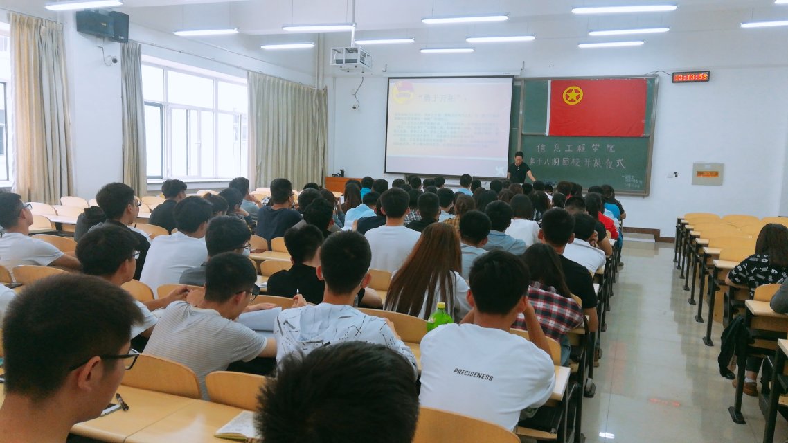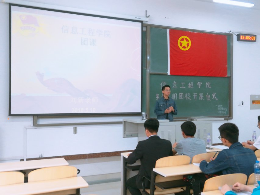 为了进一步加强团员的政治思想观念,增强团员对团组织的深刻认识,2018年5月10日中午12:40,由m88官网团总支团务与素教部主办的信息工程公司第十八期团课开课仪式暨第一次团课在逸夫楼G204举行,信息工程公司团总支书记刘新老师以及18期团课学员全部到场。
