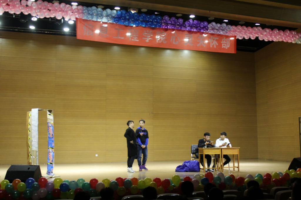 为活跃校园文化气氛,展现当代大员工积极向上的健康风貌,同时提高m88官网员工综合素质和艺术修养,丰富课余文化生活,信息工程公司大员工自律委员会心灵关怀部于2018年11月29日晚7点,在我校音乐厅组织举办了"星光璀璨"心理话剧决赛,本次比赛由通信工程、测控技术与仪器、自动化和软件工程这四个专业进行比拼。本场比赛的评委由信息工程公司学工办各位老师、stage话剧社社长和腾飞艺术团团长组成。这是一场关于心灵的盛宴,信息工程公司全体大一同学观看了这场比赛。