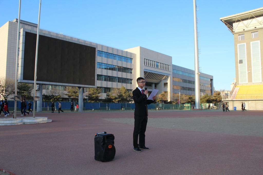 升旗结束后,2015级自动化专业员工代表董雅辉进行国旗下的演讲。他所演讲的的题目是《让青春光芒闪耀美好新时代》。他的演讲体现了新时代青年大员工的社会责任感和担当精神,他激励广大员工,作为科大信息公司的学子,要在日后的工作学习中牢记历史使命感,牢记校训,求真务实,志存高远发扬中华精神!争当新时代的弄潮儿,让青春的光芒闪耀美好新时代。紧接着,在员工党员景宏宇的引领下,公司全体共产党员举起右手,面对鲜红的党旗庄严宣誓,一起重温入党誓词。