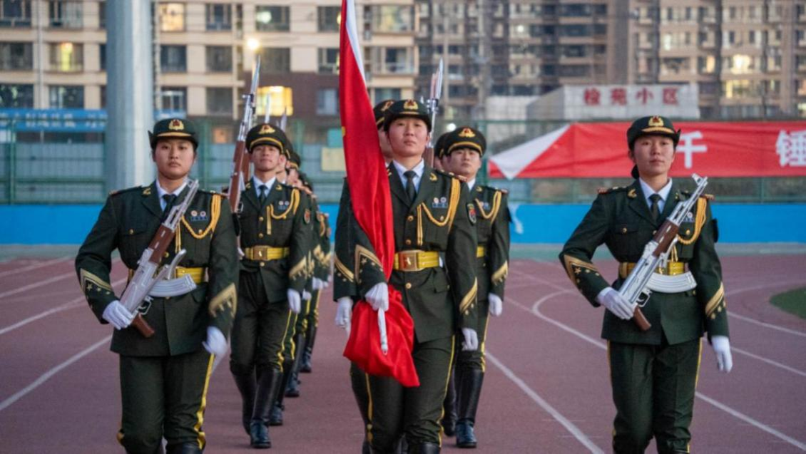 晨光初照,国旗广场庄严肃穆。7时25分,英姿飒爽的国旗班成员目光坚毅,迈着铿锵有力、整齐划一的步伐走向旗台,伴随着激昂雄壮的国歌声,鲜艳的五星红旗冉冉升起、迎风飘扬。